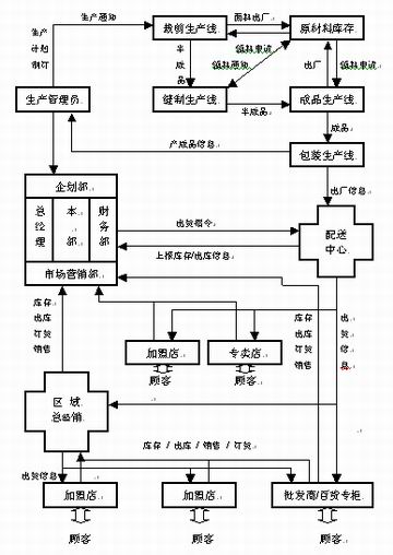 服裝企業的綜合信息管理系統主要分為兩部分:生產管理和物流管理。生產管理是從用戶訂單開始,經營訂單合同處理、生產計劃編制、原材料的采購、安排計劃(下達指令)、物料領用、工序質量控制、成品檢驗、成品入庫等。物流管理是從成品出廠、發貨、銷售、回款、退貨、客戶管理,包括售后服務。以上內容構成了服裝企業產、供、銷一體化的綜合性信息系統。
