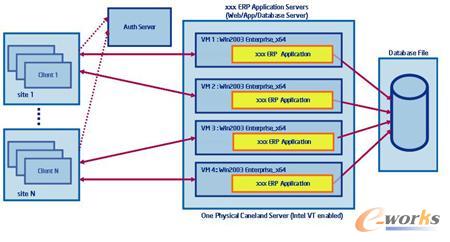 VMware當(dāng)時(shí)表示,一臺(tái)x86服務(wù)器大約可以虛擬出8個(gè)虛擬的操作系統(tǒng)(Guest OS),因此,一臺(tái)服務(wù)器中可以安裝8個(gè)ERP的模塊,達(dá)到服務(wù)器資源的充分利用與整合。