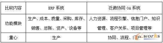 表1 ERP系統與協同OA的對比