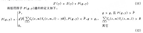 在(12)式中,參數α≥0,β>0,y,g1>1與P均是可調參數,用以調整懲罰因子的大小.其中,g,>l的作用在于算法開始的若干代不考慮投資預算約束.y的值可正可負,若取正,則相對而言有縮小超預算后果的作用,反之則有放大超預算后果的作用.參數α>0的作用在于對投資預算的約束隨進化代數的增加而要求越來越嚴厲。β>0是調整懲罰因子整體水平的參數,P為懲罰因子的上限。
