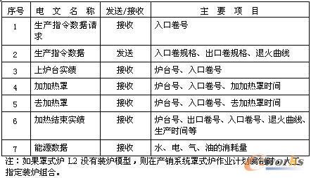 產銷系統與罩式爐退火機組L2系統交換的信息主要有: