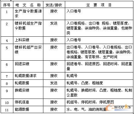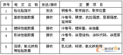 產銷系統與熱鍍鋅機組L2系統交換的信息主要有: