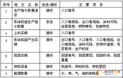 產銷系統與彩涂機組L2系統交換的信息主要有: