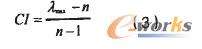 在解決實際問題時。由于各種因素的影響,可能導致結(jié)構(gòu)出現(xiàn)某種偏差,破壞一致性,為了保證層次分析法得到的結(jié)論基本合理,必需把判斷矩陣的偏差限制在一定范圍內(nèi),為此需要對構(gòu)造的判斷矩陣進行一致性檢驗,由此引入判斷一致性指標Cl和隨機一致性條件RI。
