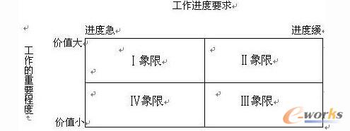 參見下面的矩陣圖。對(duì)于監(jiān)理,在工作分解(WBS)的基礎(chǔ)上,根據(jù)任務(wù)的緩急和重要程度特性,我們可以把最近一段時(shí)間(半月、一周或一天)的工作根據(jù)其特點(diǎn)分別放在的矩陣圖的4個(gè)象限中,進(jìn)行檢查、分析,并提出監(jiān)理意見。