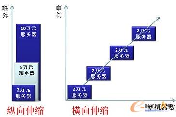 3、當(dāng)業(yè)務(wù)負(fù)載顯著增大的時(shí)候,可以通過綜合運(yùn)行橫向伸縮(Scale Out)和縱向伸縮(Scale Up)策略,大幅度提升整體IT部署的性能、降低響應(yīng)時(shí)間。
