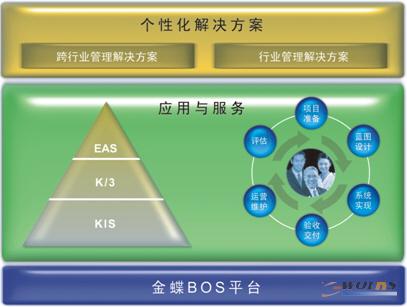 金蝶中間件是適應企業管理理念和需求不斷變化產生的新技術,包括業務中間件和基礎中間件。我們基礎中間件-應用服務器產品已經得到國際公認,在國內第一家通過了J2EE認證,F在我們又有了業務中間件,它可以在兩個方面發揮作用,一個方面是將業務從軟件的功能模塊中分離出來,做成業務中間件,這個業務中間件支持企業管理模型的動態改變。在業務中間件中,軟件系統相對固定的僅僅是一些類似原子的元模型,而企業的業務模型可以在元模型的基礎上任意擴展;A管理也好,績效管理也好,任何新的管理理念都僅僅是業務模型的變化或擴展,可以隨企業管理重點的轉變而轉變;另一方面,因為采用了基于模型驅動架構的開發方式,開發過程采用同樣的模型語言元素進行分析、設計和開發,設計人員是直接在分析人員的業務模型上展開設計,開發人員是直接在設計人員的設計模型的基礎上進行開發成系統,溝通成本大大降低,原子化模型保證了每一個管理理念在信息系統從需求分析到開發實施的知識傳遞過程可以獲得高保真效果。