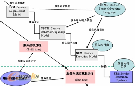 圖7是基于服務模型的驅動方法體系。這個體系的目的在于怎樣支持一開始的服務需求到服務的實現,以及對于服務性能的模型的評價和執行的評價,其目的是幫助人們建立好服務系統。
