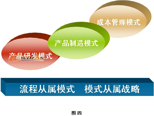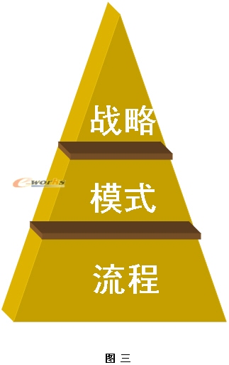 為了實現以協同商務和信息集成推動企業創新的總體目標,我們要深入研究流程從屬模式,模式從屬戰略的基本關系,如圖三、圖四所示。