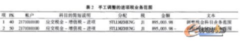 (1) 問題 。由于進行發票校驗生成的進項稅業務范圍為空,這時查看總賬科目余額時會發現進項稅當月發生額有業務范圍為空。正常情況下,月底運行完業務范圍調整后進項稅業務范圍為空的余額應為零,但可能會發現運行完業務范圍后,進項稅業務范圍為空的余額并沒有調為零。查找業務范圍調整日志后發現,當進行發票校驗時在總賬科目處手工輸人稅金行項目,如不輸人業務范圍,則月底進行業務范圍調整后業務范圍為空的進項稅余額不為零,產生的業務范圍調整憑證如表1。