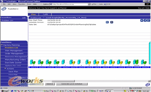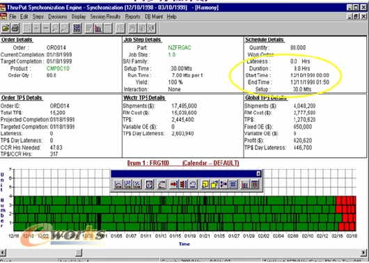 通過提供易于理解的工廠視圖,排程器可成為非常有價值的決策支持工具。借助整體圖表和每個條塊下顯示的信息,用戶可以決定最關鍵的、需要解決的問題,及采取何種行動可以幫助解決問題。例如,主生產計劃員可以了解工廠關于使準備時間最小化的決定是否與及時交貨相沖突,并找出折衷方案。如果是由于缺少合格人員而造成交貨延期,廠長則可決定讓某些員工加班;物料計劃員可以找出是哪些物料引起了客戶訂單的延期,并決定更改訂貨數量或訂貨日期;