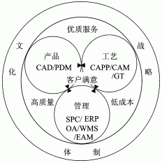 企業信息化的內容很多,在技術方面有CAD、CAPP、CAM、CAE、GT等等,在管理方面有ERP、OA、EAM、TPM、WMS等等,在自動控制和數據采集方面有DCS、質量管理方面有SPC等等;說明企業信息化選型是一件涉及面很廣,需要全面規劃的系統工程。見圖1。