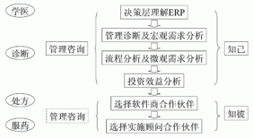 我們提倡ERP系統選型要遵守“知己知彼原則”,所謂“知己”就是在理解ERP系統的基礎上,通過企業管理診斷和需求分析明白企業的管理需求,通過投資效益分析明白投資的效果和選購系統的恰當價位;所謂“知彼”就是明白軟件商和咨詢顧問公司的特長,能不能滿足企業的管理需求。先知己,再知彼。這個選型流程很像就醫的過程,先要有一些醫學常識,通過檢測能夠判斷和確診自己的病情,然后對癥下藥,而且要遵循藥品的用法,發揮最大的藥效。遵循這個原則,即使不是百戰百勝,也會極大幅度減少決策失誤,為信息化的成功創立良好基礎(見圖6)。