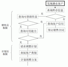 在軟件選型前,作為戰術或微觀分析,還必須進行業務流程分析和信息流程分析。舉一個處理銷售問題的例子。在手工管理情況下,一個在外地聯系客戶的銷售業務員,遇到客戶詢問時,只能通過電話同本部聯系,效率低下往往錯失良機(見圖4)。采用信息化管理系統后,加上對業務員的授權機制,流程變化了(見圖5)。可能這個例子太簡化了,企業可以有各種問題和理想的解決方案,把理想的流程描繪出來,作為同咨詢公司或軟件公司洽談的依據,經過雙方協商確認,作為ERP項目定義的內容,也是項目交付驗收的標準。