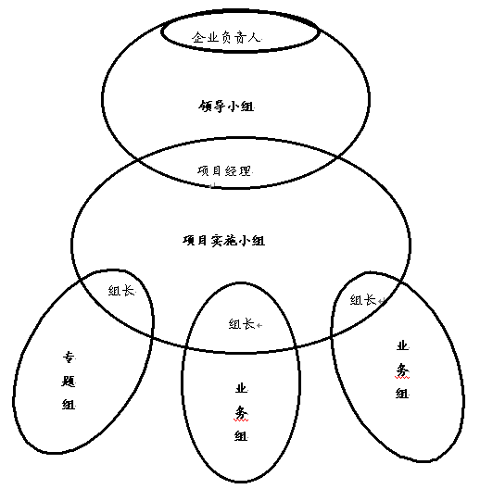 一個企業的ERP項目的核心領導小組通常由35人組成。包括企業領導、IT經理、財務總監、生產主管、物料主管等。項目領導組人員如果太少,項目組不能覆蓋涉及的各個部門,容易出現需求遺漏。如果項目組人員太多,又會降低決策效率。