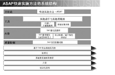 值得強調的一點是,完成的項目實施必須具備高質量的文檔,但傳統(tǒng)的實施有時又會因為過多的文檔整理而造成費用的增加。ASAP的指導思想是:按照文檔生命周期的長短賦予其重要性,對于生命周期長的文檔相應地多投入力量。ASAP并不是一個簡單的方法,它是一個體系結構,支持這一體系的是一系列的方法論、工具、實施路線圖、方案庫、系統(tǒng)配置指南,此外還有基于管理理念的開發(fā)模型,基于角色的培訓等內(nèi)容,所有這些組成了ASAP體系。