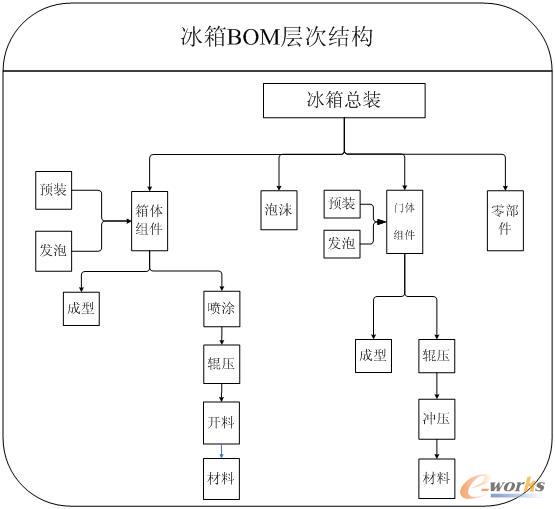 冰箱企業(yè)生產(chǎn)出來(lái)的是成品,如何把采購(gòu)的材料制造成成品,需要確定冰箱的層次結(jié)構(gòu),也就是人們通常所說(shuō)的物料清單(英文是Bill Of Material,簡(jiǎn)稱BOM),我們看到一臺(tái)冰箱,粗略地劃分,可以看到由三個(gè)大的部分組成,箱體發(fā)泡部件,冷藏門體發(fā)泡部件,冷凍門體發(fā)泡部件,這三個(gè)部分實(shí)現(xiàn)冰箱的冷藏和冷凍的功能。BOM層次結(jié)構(gòu)的確定需要根據(jù)企業(yè)的工藝路線(主要是人員和機(jī)器設(shè)備),現(xiàn)場(chǎng)管理,成本管理的需要來(lái)劃分,不同的企業(yè)不一樣,例如,冷凝盤管,有的企業(yè)買鍍鋅管,熱收縮管等材料自己做,有的企業(yè)直接作為采購(gòu)物料采購(gòu)。那如何合理確定BOM的層次結(jié)構(gòu)?我認(rèn)為有三點(diǎn)要注意,一是根據(jù)企業(yè)的工藝特點(diǎn),半成品的管理有利于工序的交接;二是滿足計(jì)劃的分解和安排,不同的BOM層次下達(dá)的計(jì)劃不一樣,半成品太多,計(jì)劃工作量大,不利于計(jì)劃管理;三是根據(jù)成本管理的需要,如果企業(yè)半成品太多,成本管理工作量大,如月末盤點(diǎn),半成品核算等工作,太少又達(dá)不到成本監(jiān)管的目的,從成本管理的角度看,要重點(diǎn)突出,達(dá)到該管的要管好,不該管的不管。以下是冰箱的BOM層次結(jié)構(gòu),僅供參考。