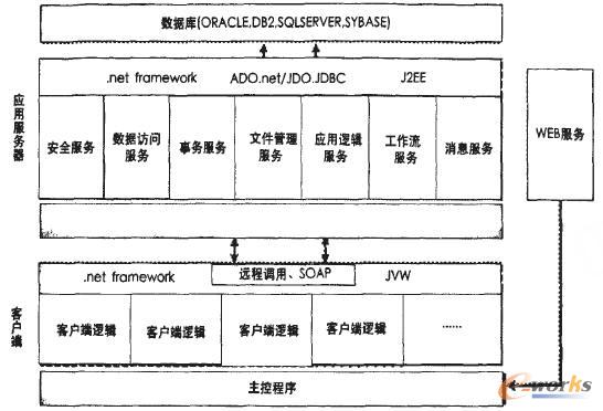 伊爾普技術(shù)架構(gòu)如圖2所示。伊爾普物料管理系統(tǒng)的模塊采用了典型的多層開放式體系架構(gòu)(multitier),支持多種客戶端設(shè)備和多種大型主流數(shù)據(jù)庫,如DB2、Oracle、Sqserverl操作系統(tǒng)。支持基于Web的調(diào)用與傳輸標(biāo)準(zhǔn)和分布式計(jì)算模型,有效解決了系統(tǒng)安全性、開放性和海量數(shù)據(jù)處理。