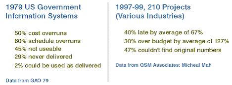 如果使用標準軟件開發方法,那么即使在常用的平臺上進行開發,也要做好失望的準備。如圖 1 所示,最近的研究表明,有一半項目將滯后,而三分之一的項目將超過預算。這一推測比 1979 年由美國總審計局的研究結果好不了多少。