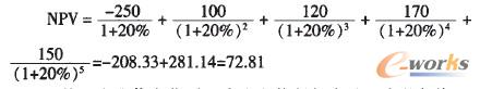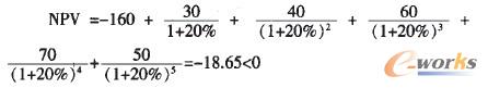 經風險調整后的資金成本率是20%,傳統(tǒng)的凈現(xiàn)值