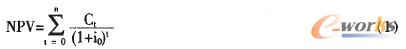 信息化的效益評價是一個十分困難的工作。目前常用的技術經濟評價方法是凈現(xiàn)值法。該方法是利用經過風險調整的現(xiàn)金流量或資本成本率來計算凈現(xiàn)值。當凈現(xiàn)值大于零,說明企業(yè)信息化建設項目在經濟上可行,反之則不可行。計算投資項目凈現(xiàn)值(NPV)的公式如下: