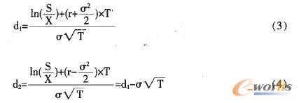 顯然,企業(yè)信息化項目為企業(yè)掙得新產品開發(fā)的投資機會。傳統(tǒng)凈現(xiàn)值對該項目的評價明顯存在不足。需要用含發(fā)展機會的凈現(xiàn)值進行評價。根據期權定價模型。該投資機會的價值實質上是以初始投資為約定價格的一個買方期權,其標的物為投資項目的價值即投資開發(fā)新產品的價值,運用Fischer Black模型可計算出這個投資機會的價值。