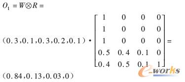 評估權重的設置為W=(0.3,0.1,0.3,0.2,0.1),則單級目標模糊評價結果為: