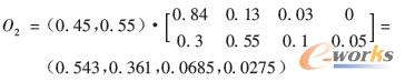 評估指標分定性指標和定量指標兩種,為便于評估計算,定性指標必須定量化處理。具體方法如下:評估結果分A級(優秀),B級(良好),C級(中等),級(較差)四個等級。相關人員對相應的評估指標按以上四等評價,經統計處理,得出評估意見在四個等級上的分布。如對銷售及銷售訂單管理進行評估,有一評估指標為預測與實際銷售的協調性,若評估結果為(0.5 (0.3,0.2,0),則表示該指標優秀的占50%,良好的占30%,中等的占20%,較差的沒有。為了同定性指標處理的結果協調一致,以便最后統一計算,我們對定量指標也進行了相應地處理,如評估指標BOM表的準確率,通常認為,BOM的準確率98%以上為A 級,80%以上為B級,70%以上為C級,70%以下為D級。若某廠的BOM表抽樣調查的統計結果準確率為90%,則其評估結果為(0,1,0,0),即為B級。