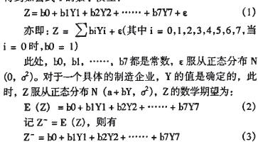 用多元線性回歸方程的形式,我們設Y是自變量,Z是依賴于Y的隨機變量,針對上面的指標體系,可以得到如公式1的數學模型: