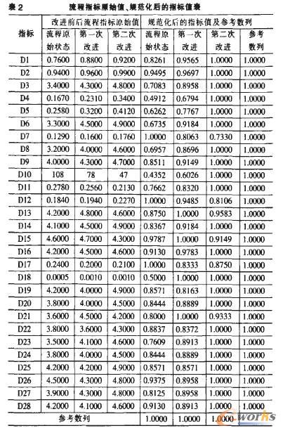 設評價對象為m個,i為評價對象的序號,i=l,2,……,m;評價指標為n個,k為評價指標的序號,k=l,2,……,n;V為第i個評價對象的第k個評價指標的評價值。將流程連續改進的指標值作為比較數列,記為Vik。
