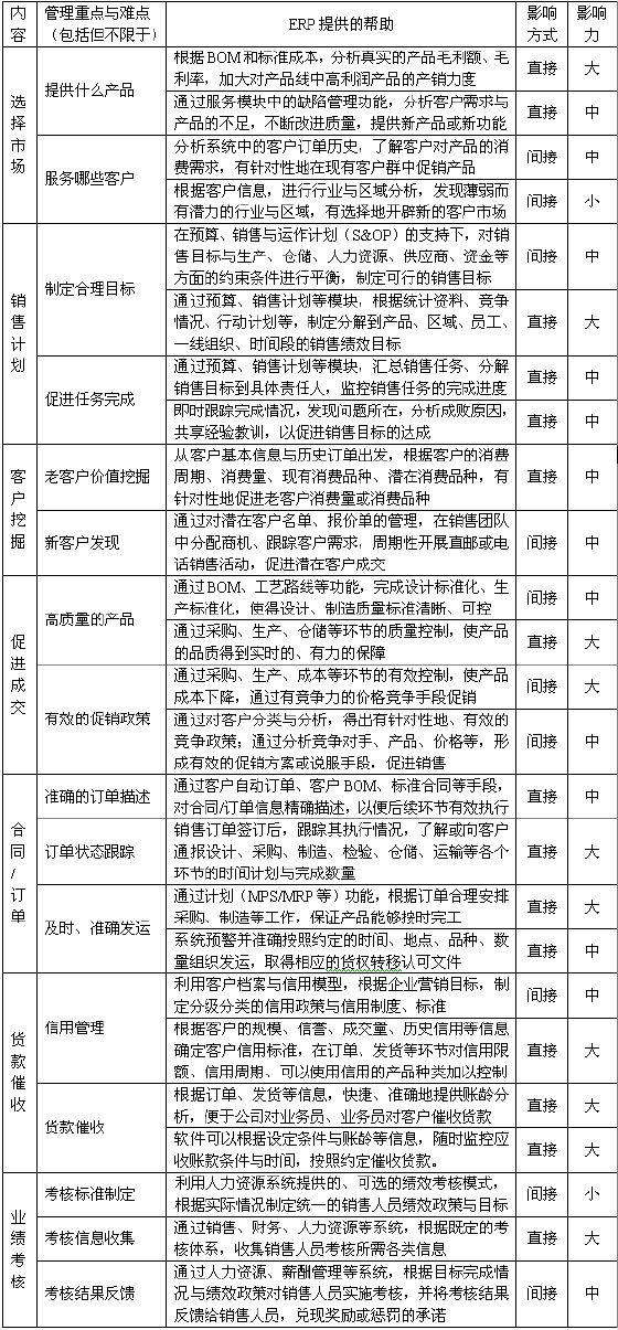 影響方式與影響力,指的是ERP系統功能對該項具體的銷售工作——即對該項“管理重點與難點”所提供幫助的影響,并非對企業整體績效或整個銷售工作的影響。