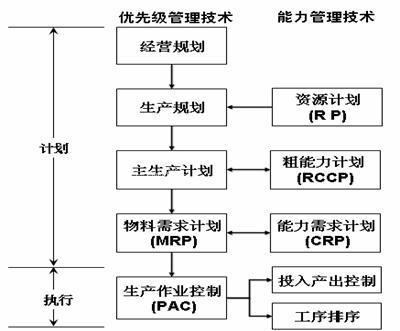 這上面的四類管理屬于計劃管理。經過經營規劃、生產規劃、主生產計劃將長期的經營目標落實到具體的月度工作目標。通過物料需求計劃,保證安排好的主生產計劃不要因為材料的準備不足而不能進行生產。
