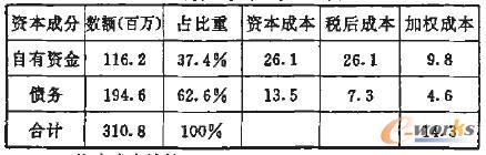 綜上所述:我們知道公司的資本都會轉換為各種形式的資產種類。本文表1中,列舉公司的資金來餌比例,并給出了相應的比重,及資本成本等重要因素。