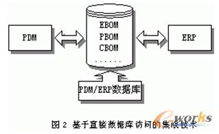 這項(xiàng)集成是通過(guò)對(duì)PDM與ERP系統(tǒng)數(shù)據(jù)庫(kù)的分析,直接對(duì)數(shù)據(jù)庫(kù)及其屬性進(jìn)行訪問(wèn)來(lái)實(shí)現(xiàn)兩系統(tǒng)之間信息交換。運(yùn)用此集成技術(shù)是以對(duì)PDM與ERP系統(tǒng)的數(shù)據(jù)庫(kù)結(jié)構(gòu)分析為前提,但大多數(shù)PDM與ERP系統(tǒng)的數(shù)據(jù)庫(kù)系統(tǒng)都經(jīng)過(guò)加密處理,并且數(shù)據(jù)庫(kù)中表與表之間存在者復(fù)雜的關(guān)聯(lián)關(guān)系,需要花費(fèi)大量的時(shí)間才能分析清楚系統(tǒng)的數(shù)據(jù)庫(kù)結(jié)構(gòu)。此外,由于PDM與ERP系統(tǒng)的版本升級(jí)可能會(huì)對(duì)各自的數(shù)據(jù)庫(kù)結(jié)構(gòu)進(jìn)行調(diào)整,因此,以此集成技術(shù)實(shí)現(xiàn)PDM與ERP系統(tǒng)的集成存在著失效的風(fēng)險(xiǎn)。