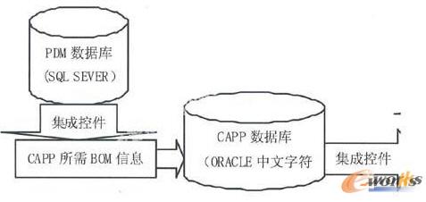 1)集成接口方案。在數(shù)據(jù)自上而下的流轉(zhuǎn)過(guò)程中,上游向下游提供集成控件,通過(guò)集成控件提供下游需要的數(shù)據(jù)。下游根據(jù)提取數(shù)據(jù)進(jìn)行相應(yīng)處理后,逐級(jí)傳遞,最后導(dǎo)入ERP數(shù)據(jù)庫(kù),供ERP各應(yīng)用模塊使用。此點(diǎn)需要注意的是:提供CAPP、PDM、ERP等系統(tǒng)的各家軟件公司能否開(kāi)放各自的源程序代碼,怎樣利用好各軟件公司開(kāi)放層面上實(shí)現(xiàn)企業(yè)數(shù)據(jù)資源的集成,是企業(yè)面對(duì)的問(wèn)題。PDM/CAPP/ERP集成示意如下圖: