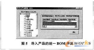 在轉(zhuǎn)化系統(tǒng)主界而上單擊工具條中 按鈕,即打開(kāi)導(dǎo)入產(chǎn)品選擇界面,界面左邊的TreeView控件中樹(shù)狀結(jié)構(gòu)是PDM系統(tǒng)中己有的產(chǎn)品類別,選擇一類別后,右邊的ListView控件就以小圖標(biāo)的樣式顯示所選類別包括的產(chǎn)品,選擇想導(dǎo)入的產(chǎn)品并單擊 按鈕,轉(zhuǎn)化系統(tǒng)將把所選產(chǎn)品包含的零部件基本記錄和產(chǎn)品的BOM結(jié)構(gòu)從PDM系統(tǒng)數(shù)據(jù)庫(kù)中導(dǎo)入集成實(shí)例的統(tǒng)一BOM數(shù)據(jù)庫(kù)中所對(duì)應(yīng)的unified_ROM_item表和unified_BOM_itemtoitem表中,導(dǎo)入后出現(xiàn)如下圖所示的導(dǎo)入產(chǎn)品的統(tǒng)一BOM界面,雙擊樹(shù)狀結(jié)構(gòu)上的項(xiàng)目可查看到該物料項(xiàng)的信息。再經(jīng)過(guò)信息處理后,單擊工具條中的 按鈕將產(chǎn)品的統(tǒng)一BOM導(dǎo)人到ERP系統(tǒng)中。