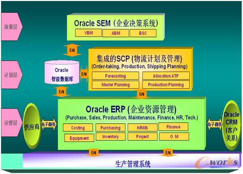 如上圖所示,Oracle制造業解決方案由以下部分組成: