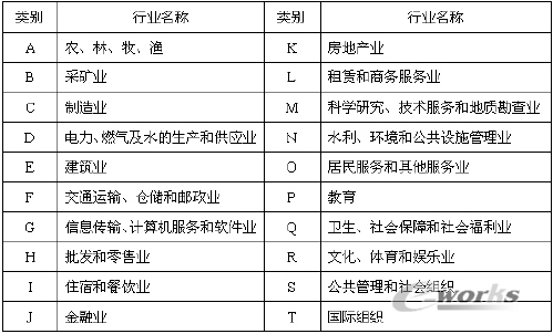 表1僅列出了國民經濟行業的門類。可看出,行業門類A和B(農、林、牧、漁、礦)是直接獲取天然原料的行業,A和B門類中的各行業為C門類(制造業)各企業提供生產原料,而其它各門類行業又是直接或間接地以A、B、C門類行業的產品為原料。