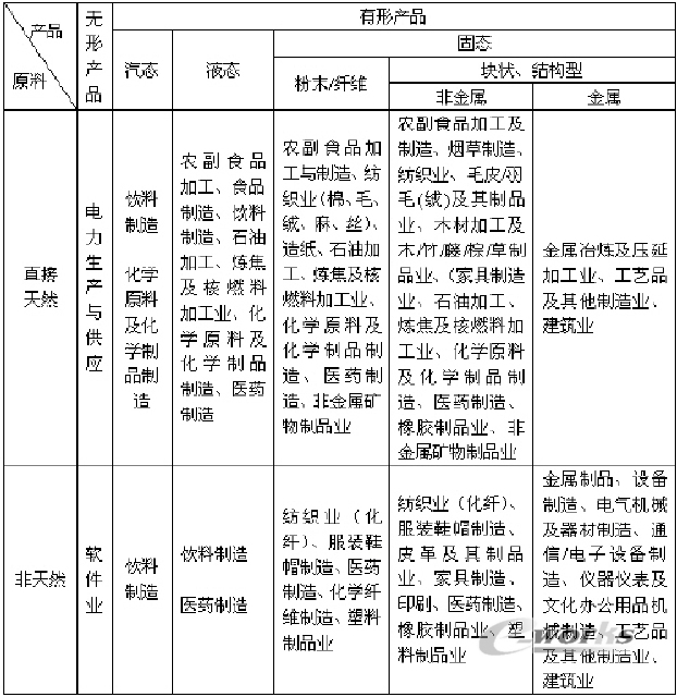 根據國民經濟行業分類標準,這里按行業主體產品及原料的性質做了整理,整理結果見表2注。