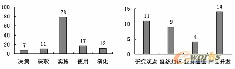 從Gartner Group首次提出ERP這一概念到現在已十多年了,然而學術界對ERP理論及產品方面的研究既不豐富也不全面,現有文獻研究大多集中在ERP項目管理及產品實施方面[12]。目前對信息系統(MIS/ERP)產品尤其是行業版信息系統產品研究的成果尚不多見。文獻[13]對1997~2000年間對與信息系統及ERP相關的學術活動、重要期刊、會議論文的文獻進行了統計,按照ERP的生命周期進行了分類,把難以歸入ERP生命周期各階段的文獻進一步分為研究觀點、組織知識、業務建模、產品開發等四個類別。文獻的統計分布情況見圖1。