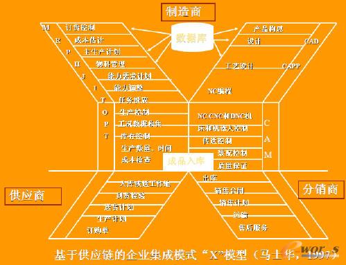 1997年馬士華教授提出一個X模型,和著名企業信息化研究中心教授希爾提出。馬士化教授提出供應商和分銷商信息怎么集成到制造商的模型。所謂X模型,是把后面供應商和前面分銷、客戶信息集成上去的一個概念。這個打破了傳統,所以當時我們開發系統是十五863成果展示。