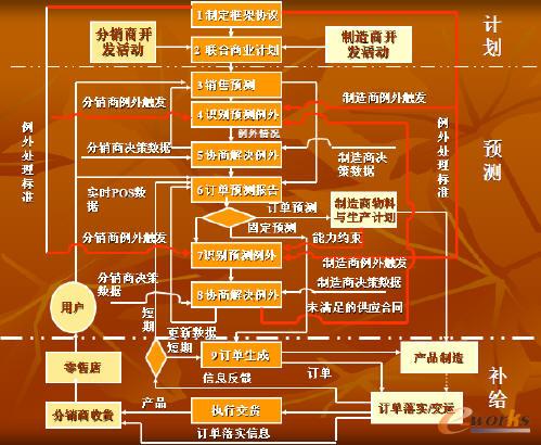 兩個企業,一個是分銷商,一個是制造商。要建立一個合作框架,比如建立長期的協作商業計劃,大家進行預測的時候要同步,比如制造商做預測要考慮到歷史銷售數據,盡你自身生產過程中一些例如的情況,分銷商要考慮到市場的變動情況,這些實時的數字同時來處理,所以大家建立預測的數據就更準確,更好,比單一企業做更好。補給也是這樣,快速補給,這個是供應鏈高級信息分享技術,或者協同運作技術。從理論界來講,仍然是研究一個課題。