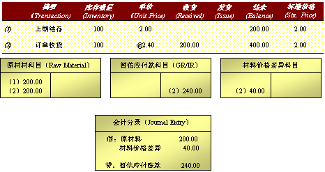 ●訂單價格與標準價格的差異轉入材料價格差異科目。也就是說材料的實際價格=標準價格+材料價格差異。