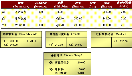 移動平均法在系統收貨及收發票中的計價過程: