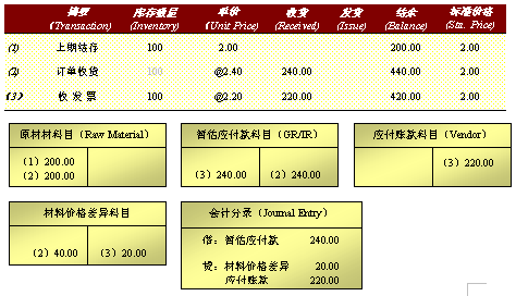 標準價格法在系統收貨及收發票中的計價過程: