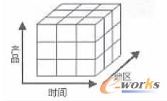 關系數據庫之父E.F.Codd提出了多維數據庫和多維分析的概念,即OLAP。維就是人們觀察數據的角度,維存在細節程度不同的多個描述方面,維的多個描述方面稱為維的層次。例如,時間維有日、月、季、年等層次來描述。多維數據一般都以數據立方體的結構存放。它用三維或更多的維數來描述一個對象,每個維彼此垂直。數據的測量值發生在維的交叉點上,數據空間的各個部分都有相同的維屬性。如圖2所示。