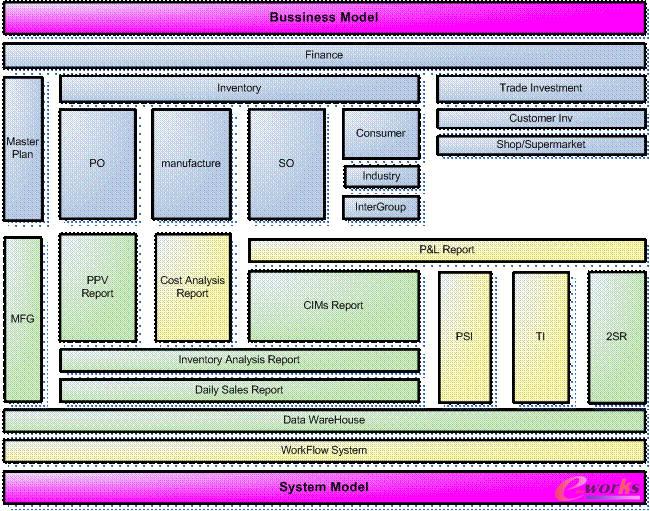 同時MFG/PRO與數據倉庫及BI系統做了接口,雖然之前四班的系統與數據倉庫及BI系統也有集成,但是由于本身四班的基礎數據不準確,BI系統也起不到應有的作用,F在BI系統每天都會做出一個銷售報告,便于查找問題。