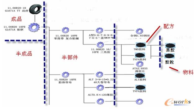 通過完整的BOM管理,以及半部件上關聯的文檔的管理,可以完全實現輪胎制造企業在結構設計方面的管理需求。