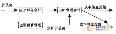 如下圖所示,在ERP中融入全面預算信息,可以實現(xiàn)成本發(fā)生前先預算;成本實際發(fā)生時,價值流與預算價值流并行。通過管理會計模塊對比、分析控制;最后將實際成本信息與預算的差距進行及時反饋。