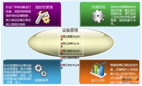 在生產(chǎn)管理方面,我們強(qiáng)化了班組管理,生產(chǎn)現(xiàn)場的數(shù)據(jù)的采集,比如說鋼瓶的管理,壓力空氣的管理,這都是現(xiàn)場安全的管理,設(shè)備的管理。設(shè)備的管理在流程行業(yè)至關(guān)重要,因?yàn)榱鞒绦袠I(yè)都是連續(xù)生產(chǎn)的,如果設(shè)備停車了,除了影響生產(chǎn),還會(huì)造成裝置當(dāng)中的一些物料浪費(fèi),造成管道的擁堵,給生產(chǎn)帶來巨大的麻煩。
